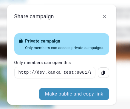 If the campaign is private, it will prompt you to make it public.