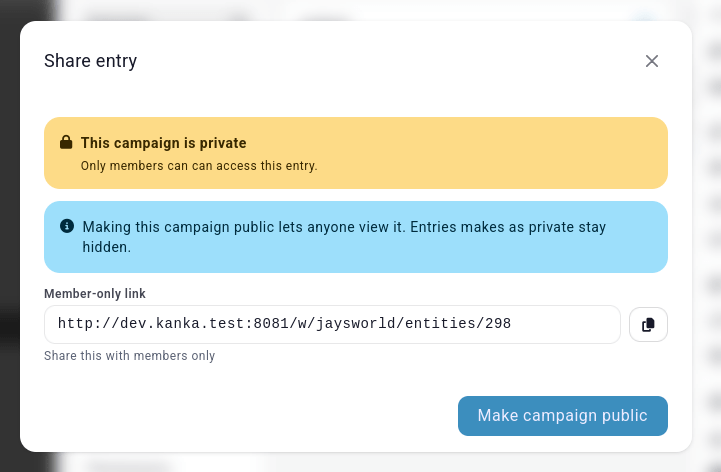 We’ve added some new “sharing” workflows to make it quicker and easier to share your worlds and entries with people (whether that’s a player, a ready, or someone you’re trying to recruit to your cult worldbuilding project).