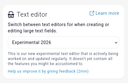 To switch to this experimental editor, go to your appearance settings and select the Experimental 2026 text editor option.
